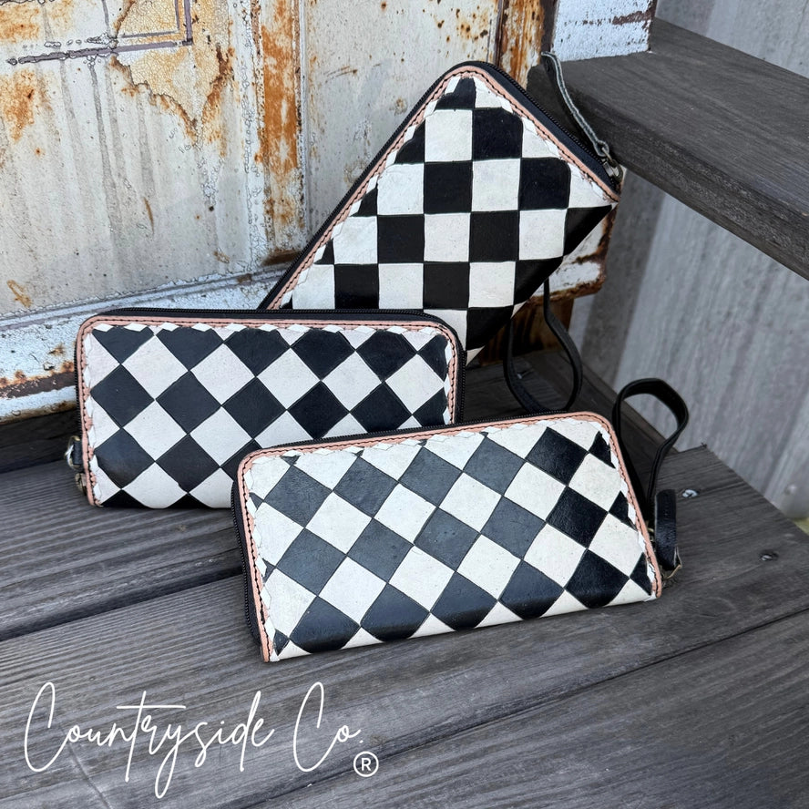 Bring happiness to your day with the Avenue Checkered Leather Wallet! Hand-painted on both sides and detailed with leather stitching trim, this wallet is a playful mix of art and function. The secure zipper closure keeps your goodies safe, and the detachable wristlet adds a dash of convenience and style for on-the-go fun. Avenue Checkered Leather Wallet Details: 8 credit card slots Detachable wristlet Zipper change pocket 2 pockets